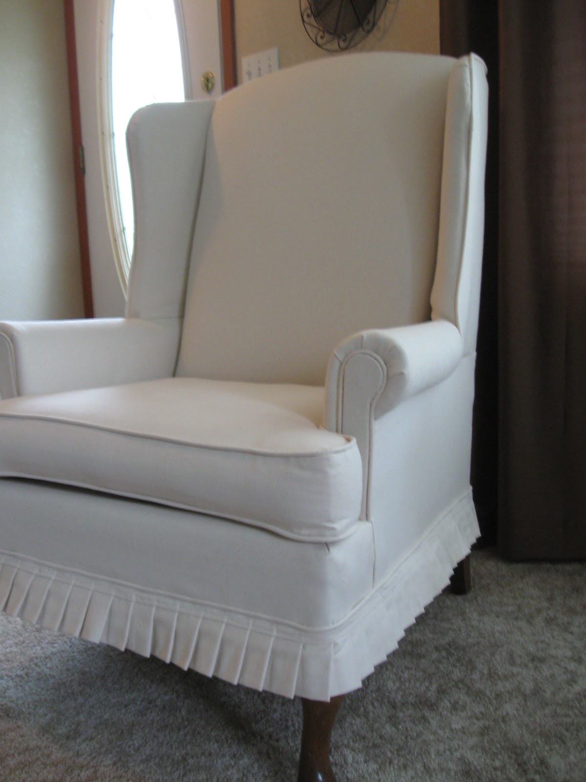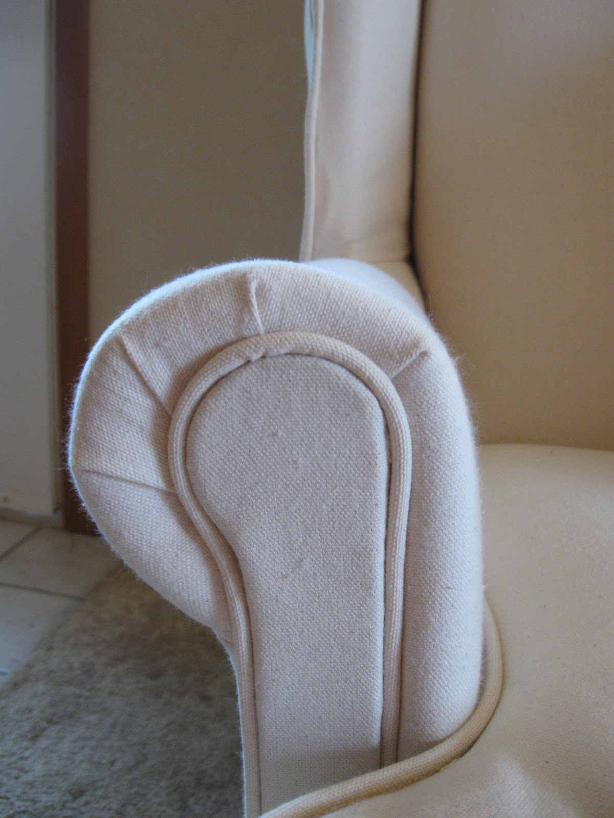 to work with,I recycled the zipper and all the piping.I sewed new piping……and created my own knife pleat for the skirt.Read how I sewed the knife pleat here.Then the reassembling process could begin. Batting was added to the tops of the arms, and the fabric