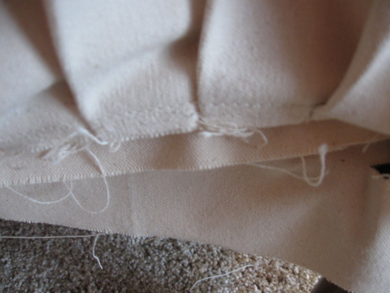 we had a problem!When I decided to add the knife pleat skirt….all the ones I’d looked at were slipcovers and not upholstered.Oh…Oh!!!!How to attach it???After researching a little I found a blog tutorial byCentsational Girl on double welted cord.So I whipped some up only to find that my staplesstill showed in the middle of the welting.